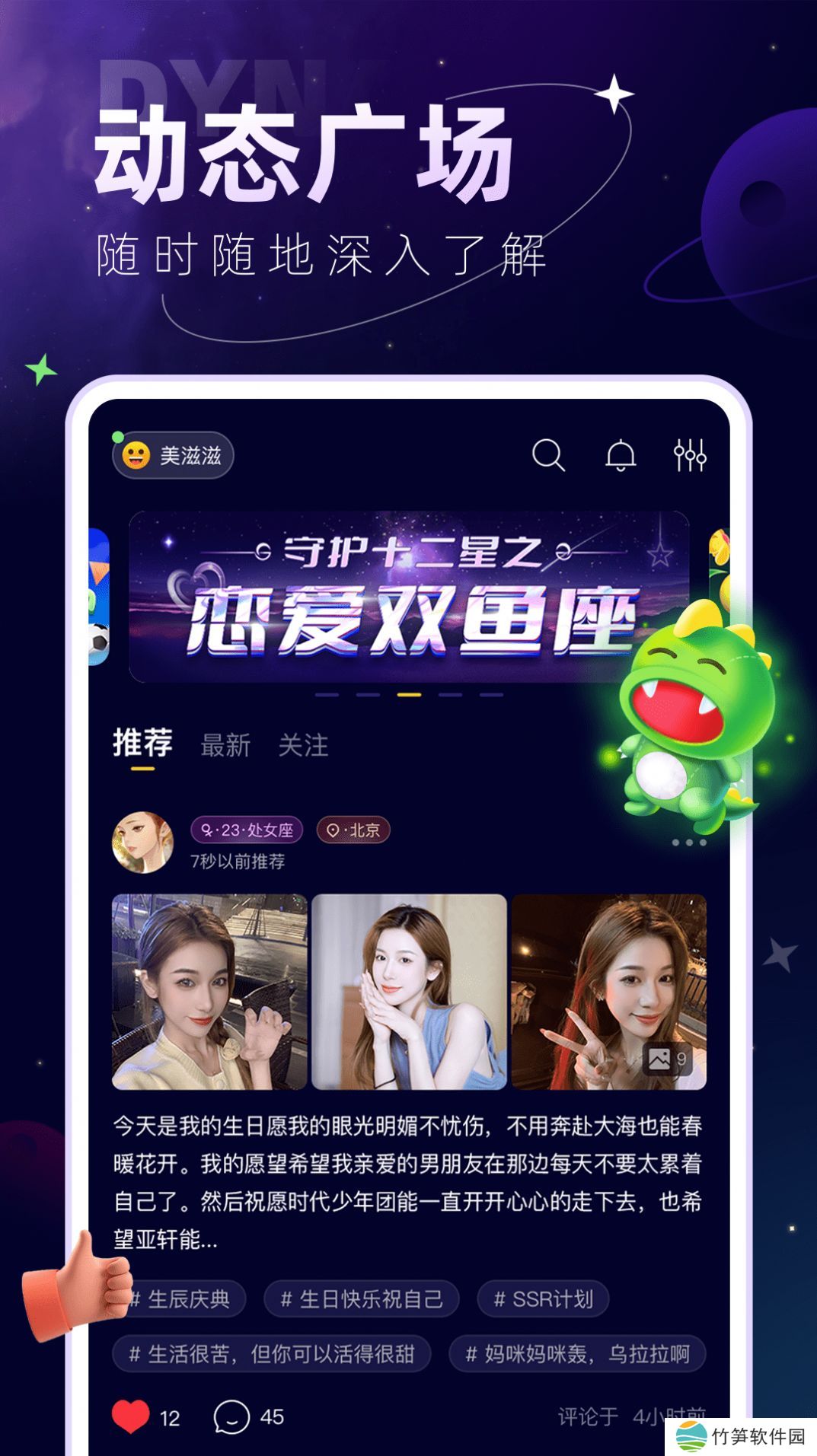 IU星球软件介绍软件内有着来自全球各地的年轻人,通过软件用户可以通过各种不同的方式与其他人进行互动,与更多人分享,展示出你更具有个性的一面,系统还会智能化的为你推荐有着更多共同兴趣爱好的小哥哥或者小姐姐,认识到更多有着共同语言的小伙伴!