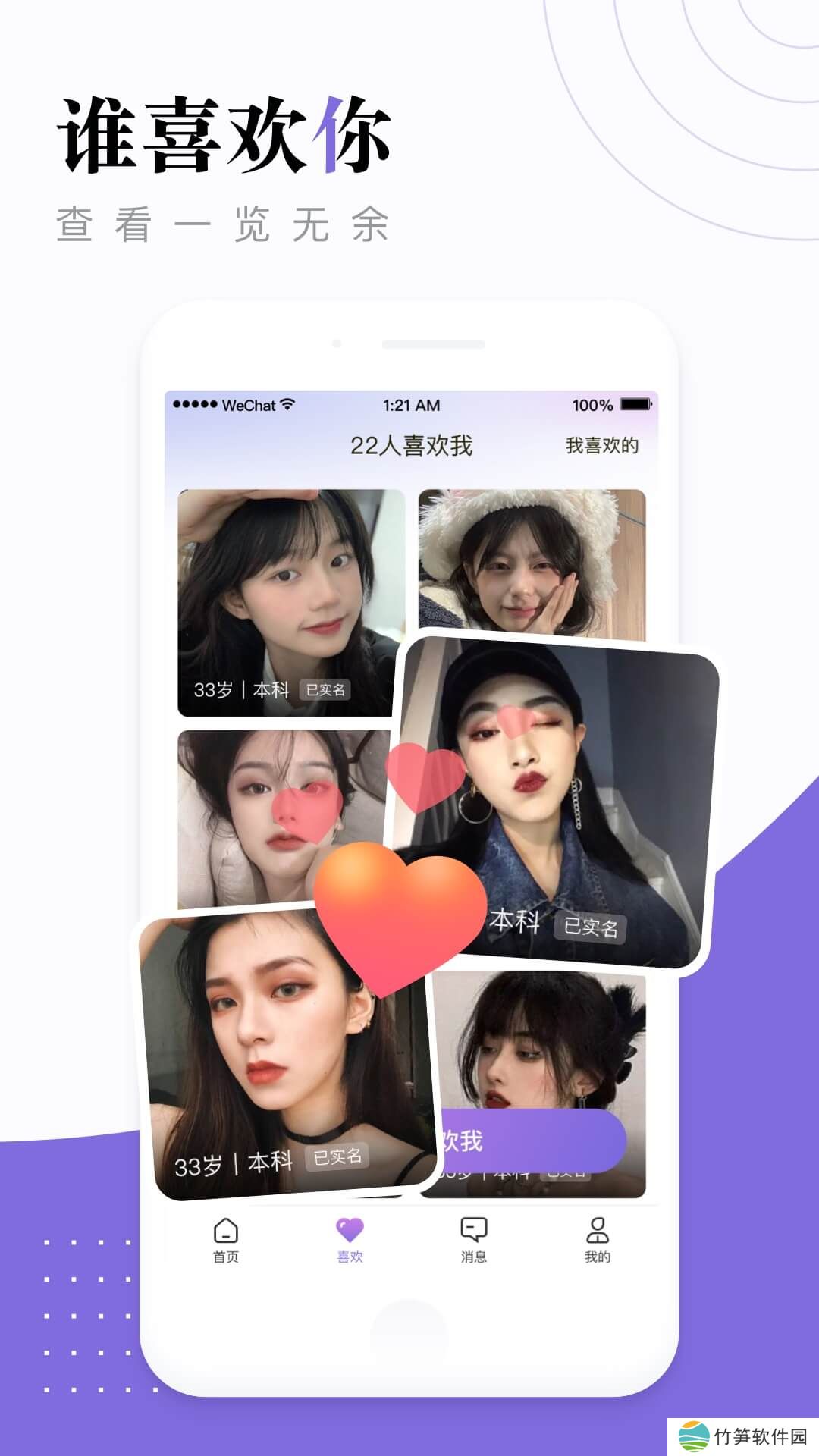 彼此喜欢即配对成功,完成实名认证即可开始聊天