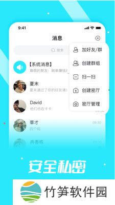 1、拥有密厅功能(包含密群列表、密友列表)、个人密室、群密室等功能等功能。