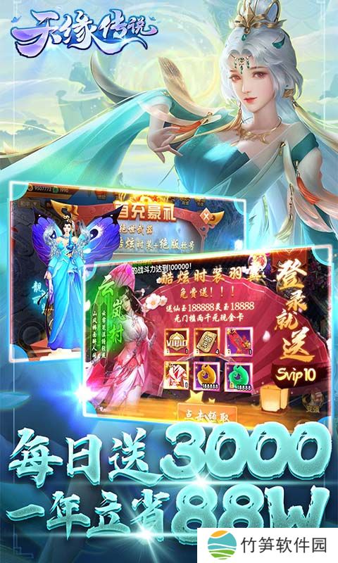 1、登录即享VIP10尊贵特权,还有2000元刷充现金卡、永久豪华羽翼与时装,以及888,888仙玉等你来拿。