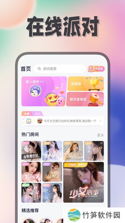 3、各类主题房、专属线上派对、掌握社交主动权,轻松找到志同道合的人!