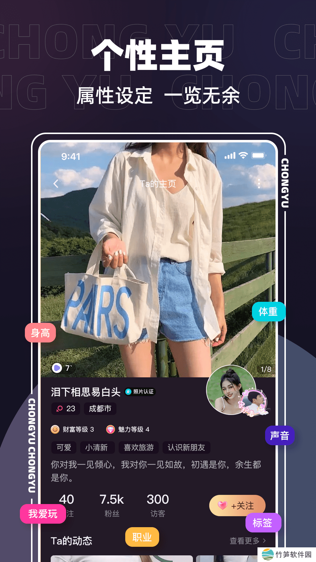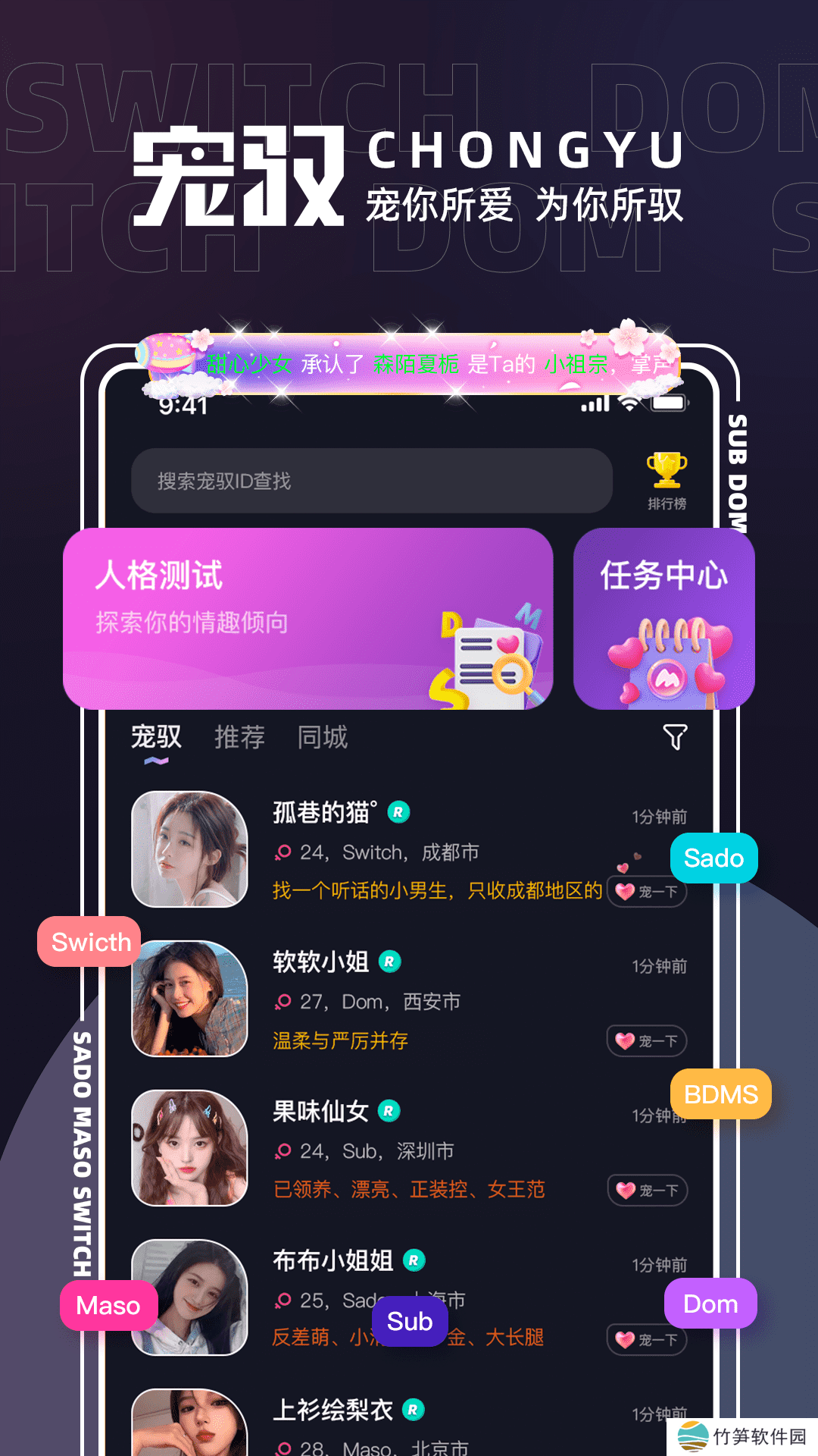 宠驭交友是一款社交交友类脱单软件,软件中好玩的社交功能以及超级好用的脱单内容等你来体验哦,让你可以在这里轻松的去扩大自己的社交圈,超多漂亮的小姐姐和小哥哥等你来认识哦,更多好用的脱单内容不会让你失望的,有需要脱单的朋友赶快来007游戏网进行下载体验吧!