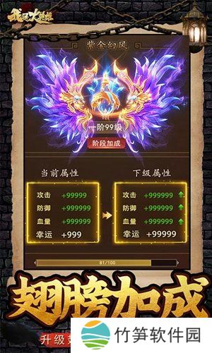 4、游戏中设有各式各样的炫酷翅膀,玩家可获取并培养升级,以显著提升角色属性,增强战斗力。