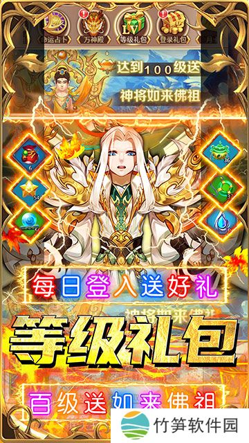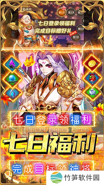 3、七日登录福利满满,达成七日目标即可领取神将弥勒**,助力你征战四方。