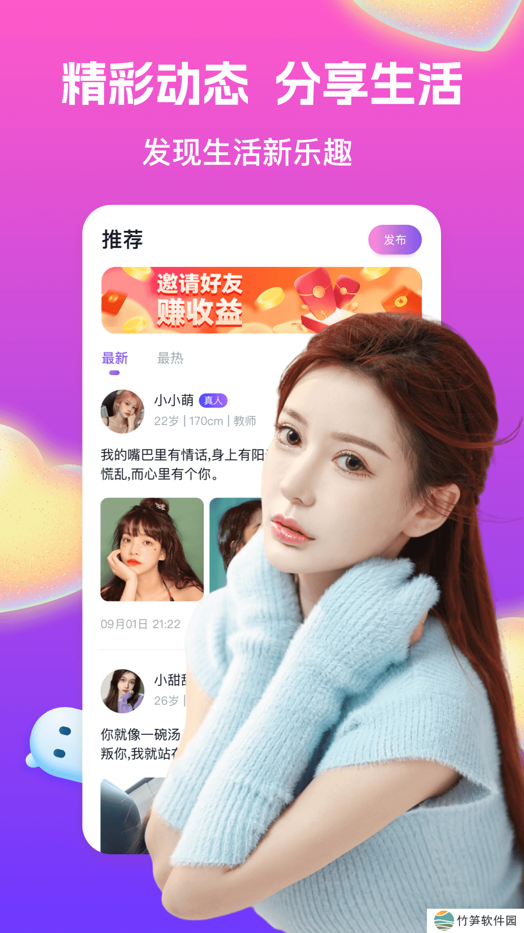 1、分享你的社交圈,在这互动更加的开心有趣。