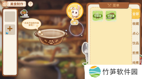 4、游戏中的美食系统可以制作各种的美食,还能通过研发解锁新的菜单,精灵吃到喜欢的食物可以增加好感度,并且恢复能量。