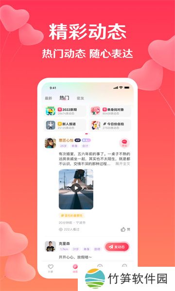 降爱交友是一款社交交友类聊天软件,软件中丰富的社交功能以及超多交友内容等你来体验哦,让你可以轻松的扩大自己的社交圈,超多漂亮的小姐姐和帅气的小哥哥等你来认识哦,让你在这里轻松的找到心仪的另一半,有需要脱单的朋友千万不要错过了哦!