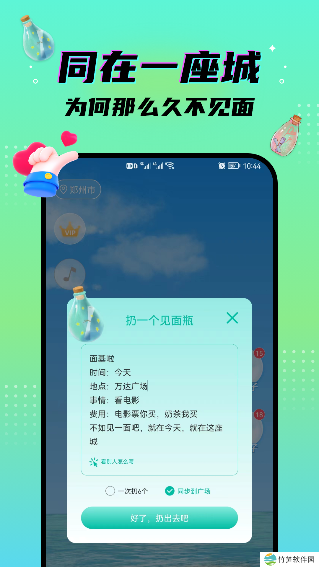【见面漂流瓶】简单直接、拒绝磨叽、即刻见面、约会交友,从此陌聊蜜爱!