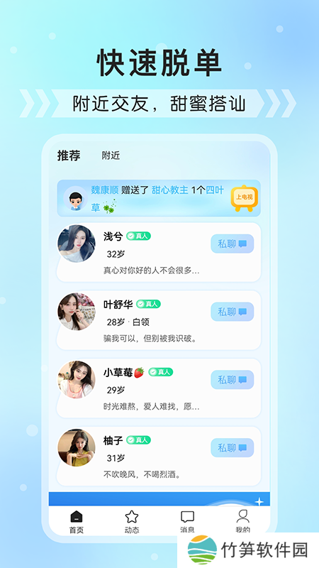 2、认识更多好友,这里每一个用户都是经过实名认证的,可以放心的进行沟通。