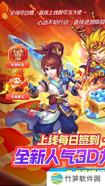 3、免费时装随心换,灵猴献瑞送好礼,战斗不断,激情跨服战不停。
