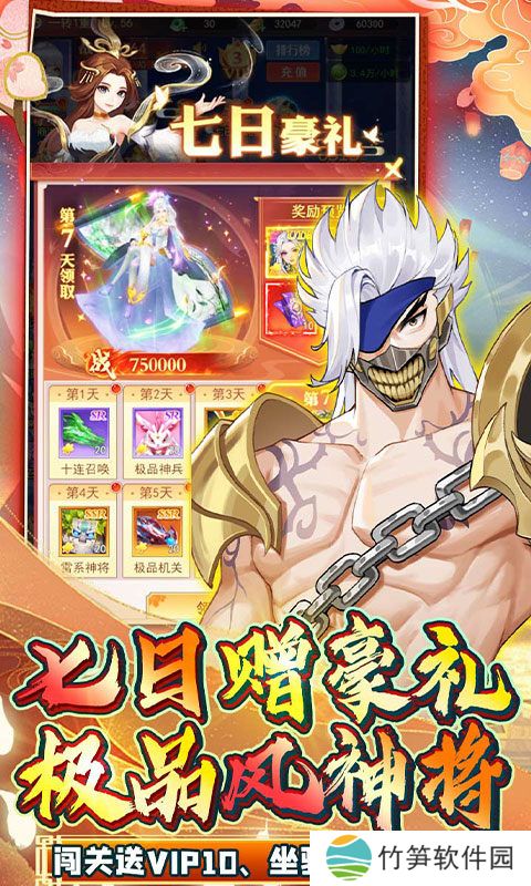 2、七日连续豪礼:连续七天福利不断,每日奖励各不相同,极品道具、神将等你来拿。