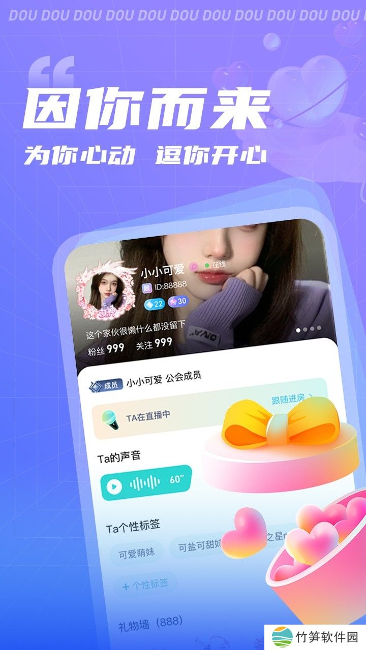 逗逗软件介绍逗逗app,语音聊天互动,轻松交友,认识更多有趣对象,连麦社交,在线交友更轻松。来逗逗app,认识更多有趣对象,在线聊天交友更简单,快速找到心动对象。