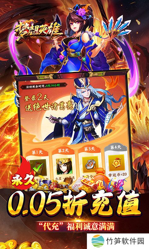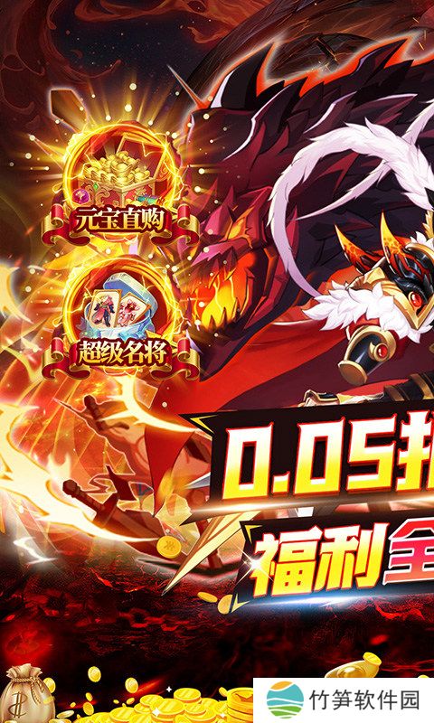 1、全场永久享受0.05折充值优惠,充值比例高达1:100(元宝),让你资源无忧。