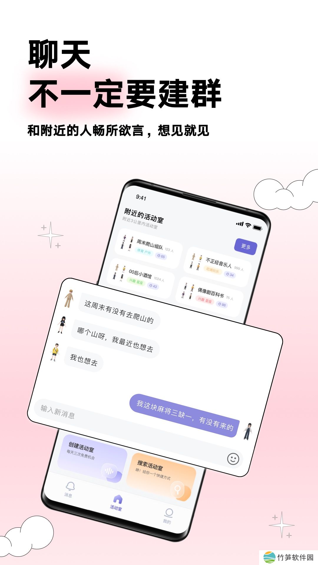 Arounders软件介绍3D时装搭配,打造个性形象,聊天不一定要建群,直接和附近的人在活动室聊天,找到和你兴趣爱好一致的人,相约线下见面,参加party,一起嗨皮起来,喜欢的小伙伴赶紧来下载吧。