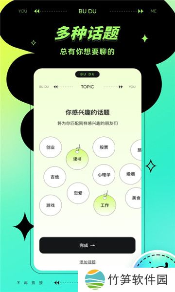 不独app下载资源附上!不独app是一款全新推出的拒绝泛社交的兴趣社交软件,在这里拥有丰富的兴趣标签帮助用户更快的找到志同道合的朋友,拥有丰富的话题和喜欢的人聊天!
