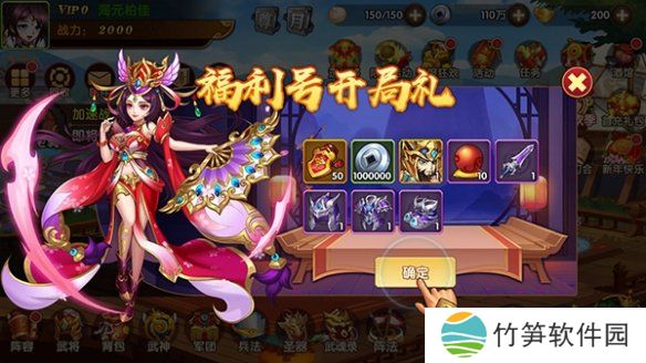 1、游戏初始,玩家即可获得丰厚的福利礼包,内含众多招募令、一套高级武器以及名将关羽作为赠品。
