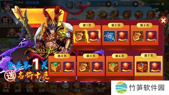 5、新手玩家专享七日登录礼包,连续登录七天即可获得神级武将礼包,还有大量招募令等你来拿。