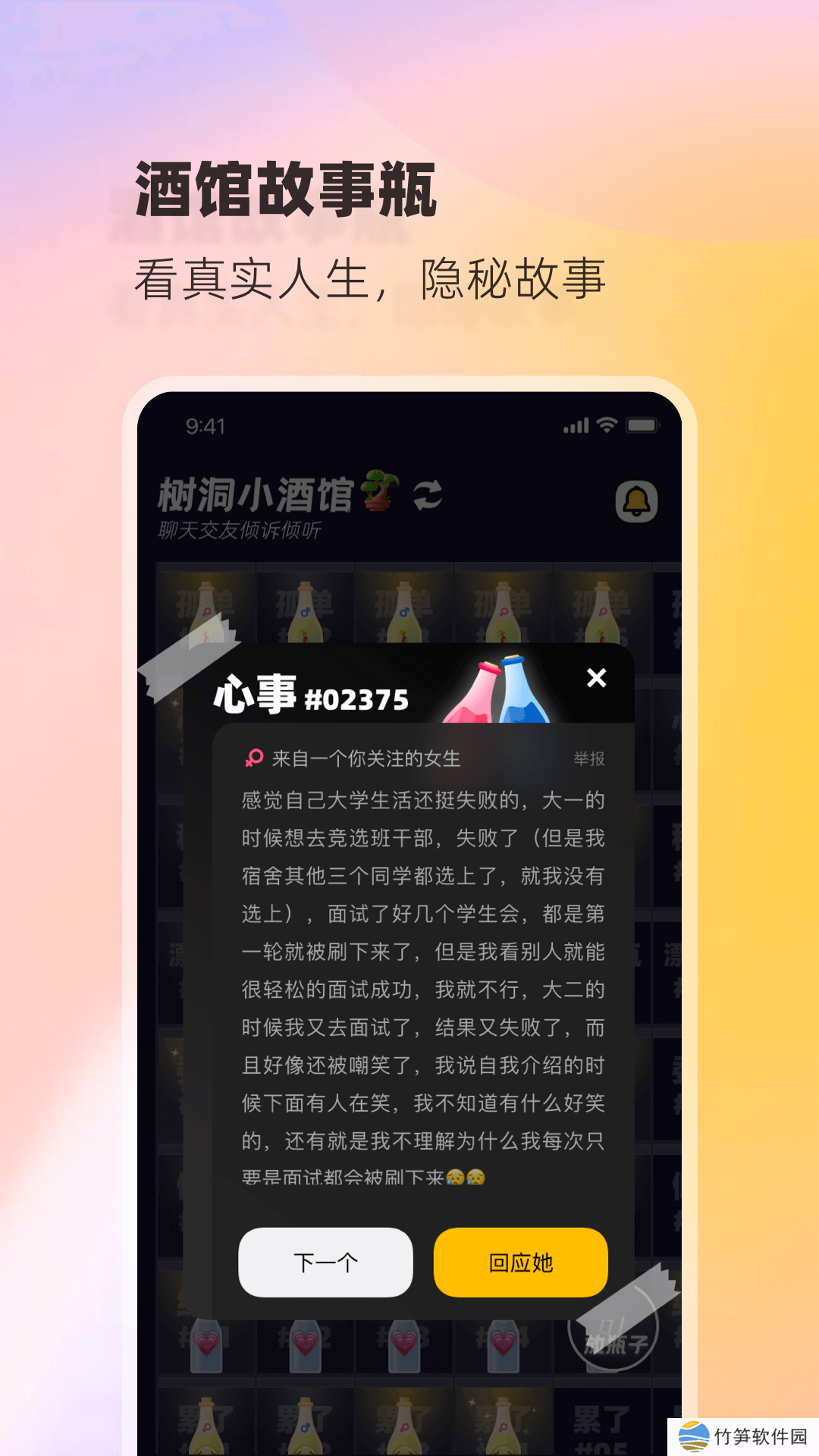 树洞小酒馆软件测评1、每个人心中都有一个未知的秘密。每个人都会遇到麻烦,没有人会告诉他们。