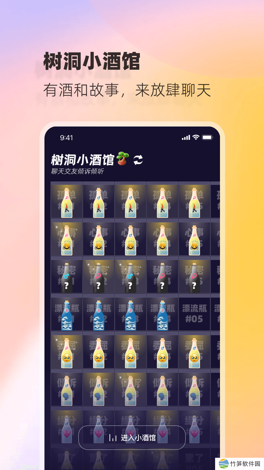 树洞小酒馆软件介绍树洞小酒馆——这是一款不仅仅有漂流瓶的软件,让你随时倾诉,放肆交流的聊天交友app。我们不再拘泥于线下的牵手约会,来树洞小酒馆,就是要放松灵魂,找个爱聊,懂你的人闲聊解忧,开启新奇的语音体验,和来自同城和全国各地的朋友一起肆意狂欢。
