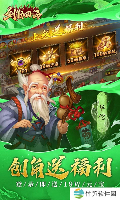 1、登录即享VIP1特权,并获得19万元宝、50万粮草以及100万铜钱的丰厚奖励。