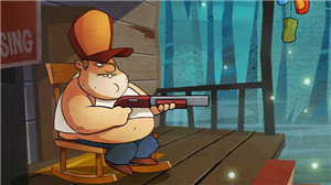 1.沼泽动物包围小屋,小屋的主角叔叔拿起枪保卫自己的小领地。