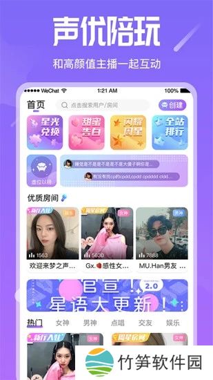 星语交友平台app正式版分享给大家,这是一款非常靠谱的在线聊天交友平台,这里汇集了来自全国各地的用户,各式各样丰富的聊天游戏玩法等待大家去体验,随时随地都能和其他用户语音交友聊天,感兴趣的用户记得来yx007下载!