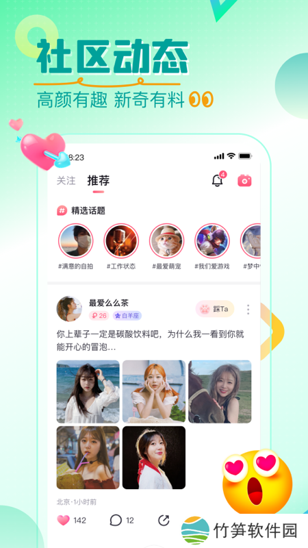 2、分享生活快乐点滴,展示自己,一键找到附近更多的小哥哥小姐姐,邂逅不一样的缘分,你关注的人都在这里发表动态哦,精彩瞬间不容错过;