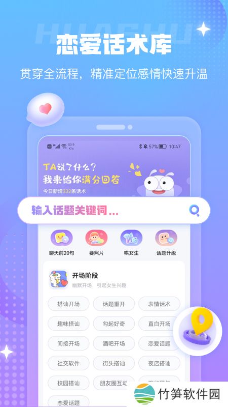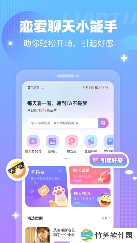 1、拥有超多的文案,海量的恋爱话术,用户都可以免费的使用与学习。