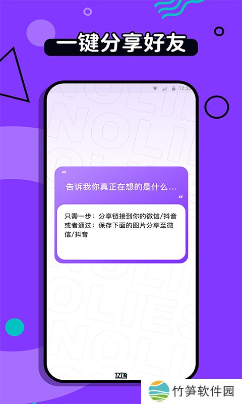 2、选择一个你想要朋友回答的问题,在社交软件上分享你的NL链接;