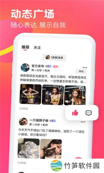 2、在交友广场上汇聚着很多人,个性化推荐合适的人给您认识;