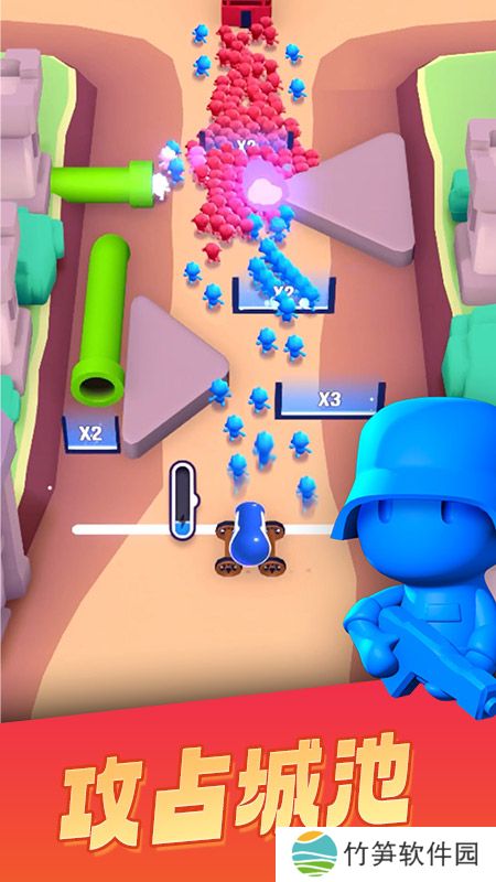 游戏中玩家可以通过不同形式的倍增门,以此来壮大自己的队伍和实力,还有各种的士兵可以收集,利用大炮等武器喷射大量的士兵,消灭所有的敌人,成功取胜赢得超多的游戏奖励。