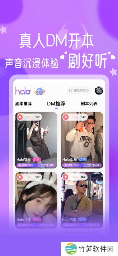 3、海量的高质量剧本,24小时真人主持人即时开本,稳定的即时语音。