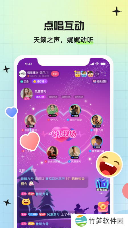 1、平台里还有热门的语音互动,唱歌、娱乐、聊天室这里应有尽有。