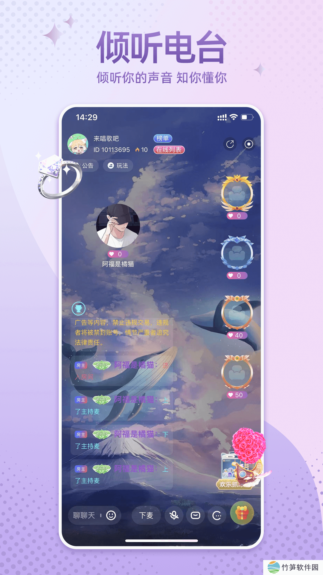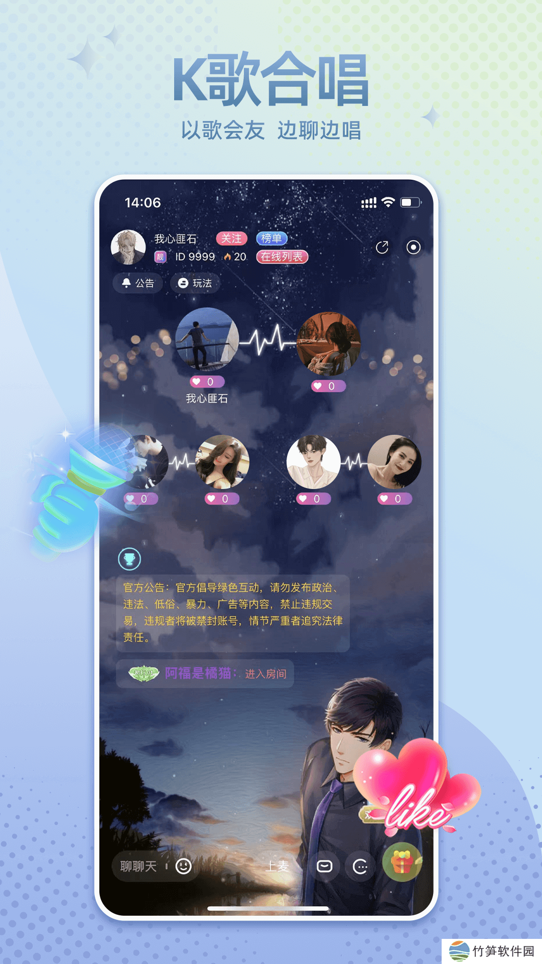 哇噢星球软件功能1、拥有更多多元化的房间,可以在这里自由的K歌,以歌声交友;