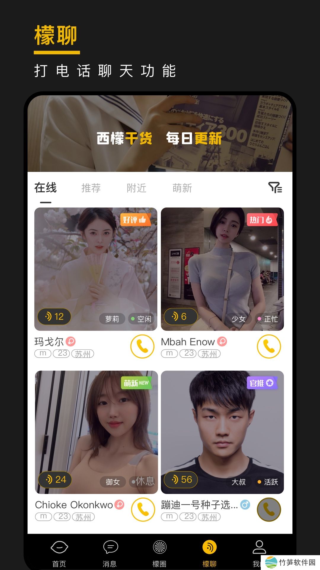 西檬之家最新版是一款聊天社交类交友软件,软件中各种丰富的功能以及超多不同的内容等着你来慢慢体验哦,更多不同的社交功能等着你来慢慢进行体验哦,超多好看的小姐姐在这里等你,有需要的朋友赶快来下载体验吧!更多不同的社交功能不会让你失望的哦!