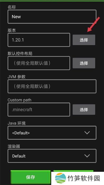 3、名称随便写,版本点选择选一个自己想玩的,其它的选项看不懂就全部默认,然后点击保存。
