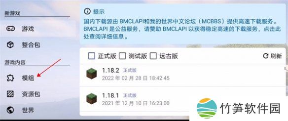 1、首先选择好一个新的游戏版本点击进入,找到模组功能。