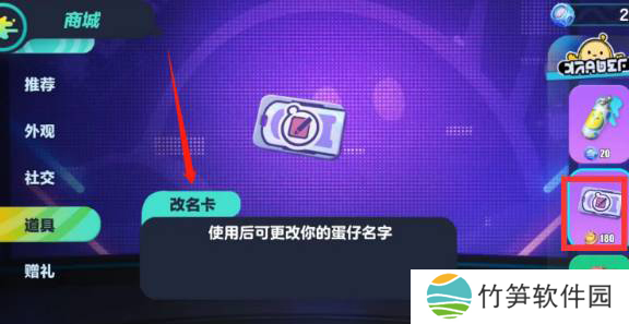 3、购买改名卡,使用后就可以更改你的蛋仔名字。