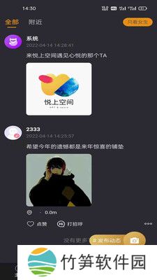 悦上空间app:精彩的社区交友方式可以快速的体验,你会发现在不一样的社区玩法在里面,快速的认识有趣的人群,让你的人际圈子快速的在线扩展,了解不同的社交操作,更好的感受到各类互动的精彩所在,而且还可以发布你的动态信息,让你的消息更多人知晓和了解!