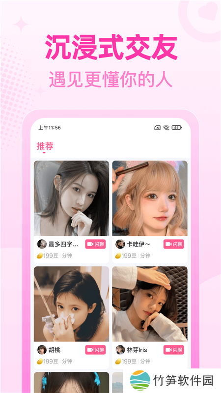 2、通过ai甄选真实女生快速视频闪聊,平均5秒即可接通,快速了解彼此;