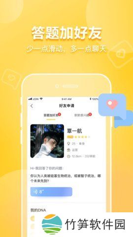 3、用语音的方式来答题,每次发布的答题加好友都能遇到语音答题,仔细听语音找到自己喜欢的另一半。