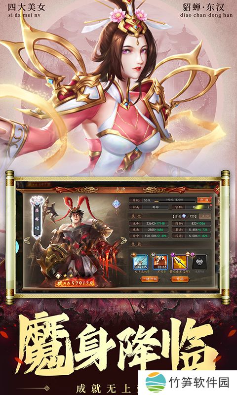 1、众多耳熟能详的三国武将角色一一亮相,更有美丽动人的貂蝉小姐姐伴你共赴战场,并肩作战。