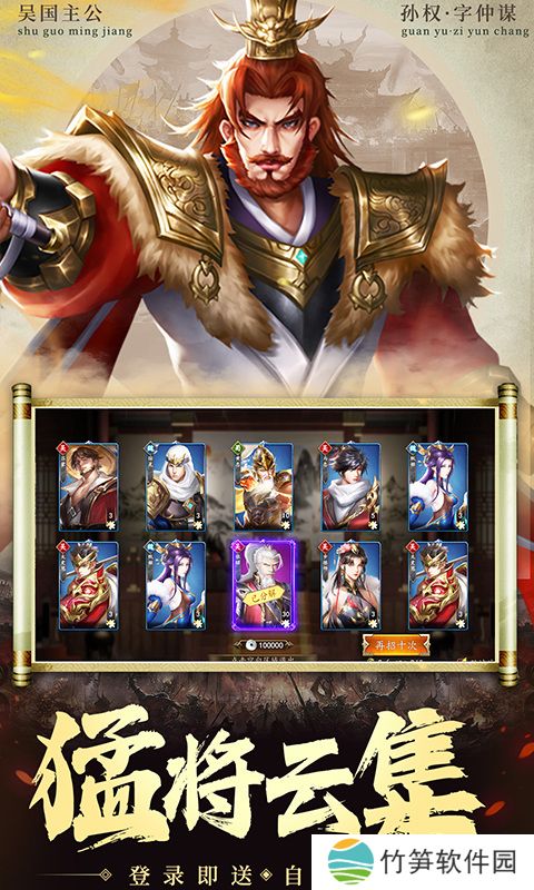 2、登录即领顶级红将,赵云、貂蝉、华佗等任你选。