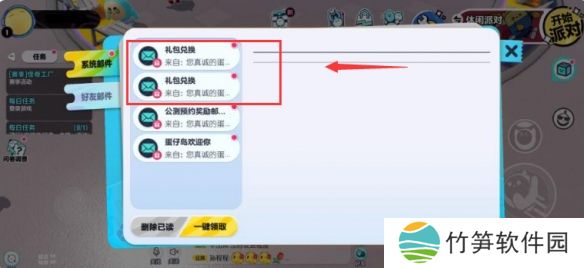 3、输入正确的兑换码,然后返回主页点击邮箱。