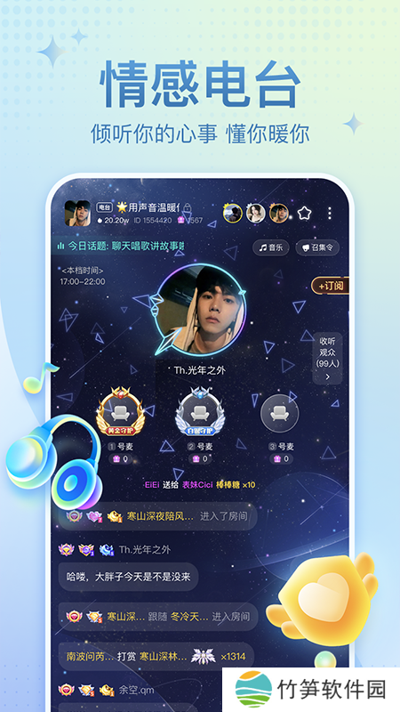 2扩列交友、多人连麦、主播点唱,更多超有魅力的小哥哥小姐姐,实时在线,陪你一起嗨;