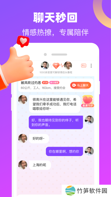 蜜蜜爱是一款非常很受欢迎的聊天交友软件,在这里汇聚了超多高质量的帅哥美女,用户可以轻轻松松结识更多有趣的新朋友,丰富的交友模式,随时随地畅快聊天,寻找自己心仪的对象,告别单身,来一场浪漫的邂逅!