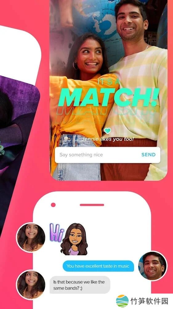 3、在用户找到合适的人后,Tinder 支持灵活多样的消息传递,并提供许多功能,让对话更有趣、更生动!