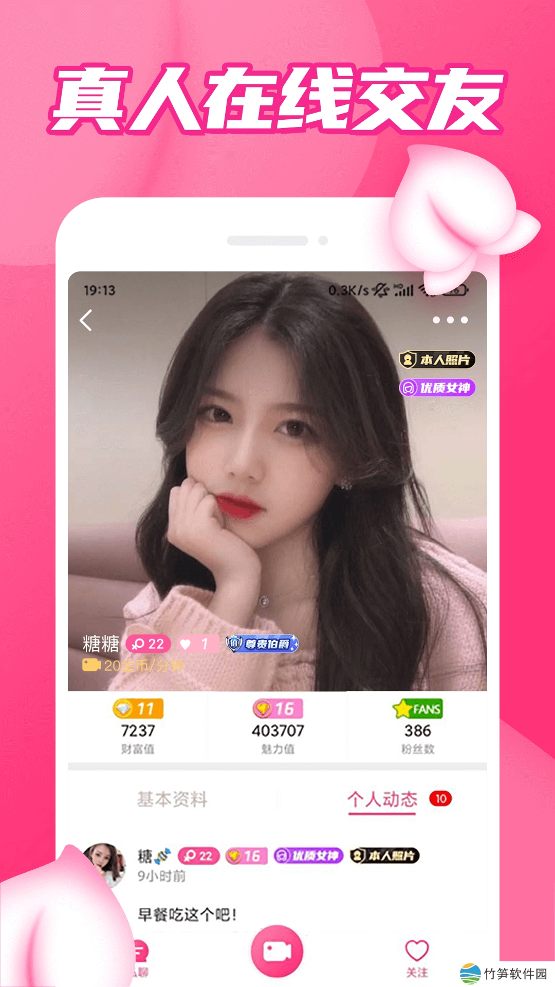 粉聊交友app:非常优质的线上交友工具,可以为你带来很不错的用户体验,平台提供的用户信息还是很全面的,不管你有什么样的交友需要都可以满足你,随时可以在线进行互动,所有的用户都是经过严格身份审核的,你可以放心在线互动,还可以分享自己的生活动态!