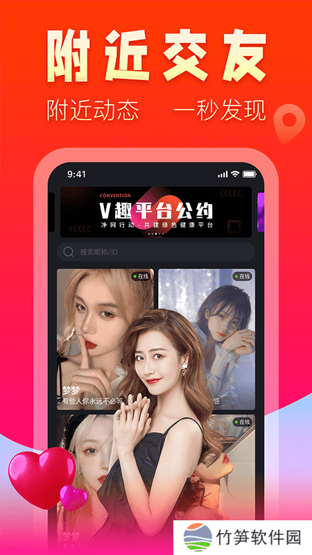 V趣是一款特别火爆受欢迎的聊天交友软件,深受广大年轻人们的喜爱,在这里汇聚了超多帅哥美女,丰富的交友模式,用户可以随时随地在线聊天,支持同城定位附近人交友,轻松发现身边小伙伴,找到自己心仪的对象,来一场看浪漫的邂逅!