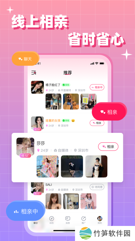 在线相亲,快速相亲,致力于帮助大多数单身人士进行在线相亲。它不受时间和空间的限制。它可以随时随地聊天,帮助你找到生活伴侣,你可以通过语音、视频和其他方式与同一城市的异性聊天和互动